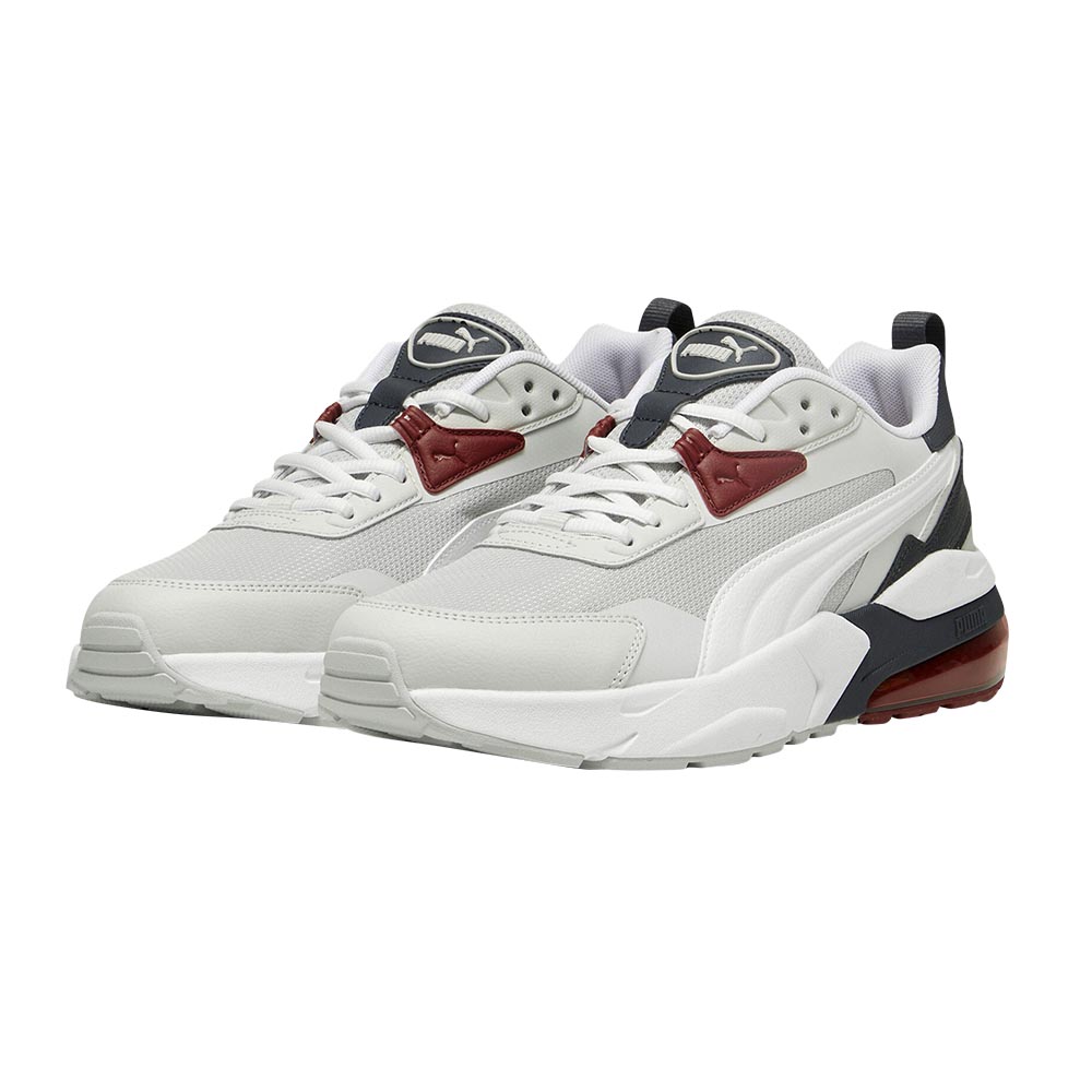 Lleva la comodidad y el estilo urbano al máximo nivel. Los Puma Electron E Pro presentan una estética moderna y deportiva, confeccionados con una parte superior de malla blanca transpirable y refuerzos en material sintético para asegurar un ajuste perfecto y durabilidad. El diseño cobra vida gracias a sus elegantes detalles en color azul marino y los dinámicos acentos en tono vino. Su principal atractivo es la cápsula de amortiguación expuesta en el talón, diseñada para absorber los impactos y brindarte una pisada increíblemente suave durante todo el día. Plantilla acolchada, suela con excelente tracción y un diseño pensado para destacar en las calles.