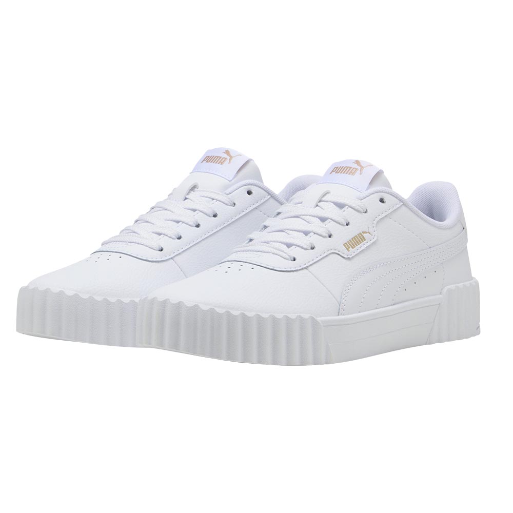 Los Puma California White–Gold combinan un diseño limpio y elegante con detalles dorados que elevan cualquier outfit. Su suela acanalada ofrece estilo y tracción, mientras que la parte superior blanca mantiene un look fresco y versátil.